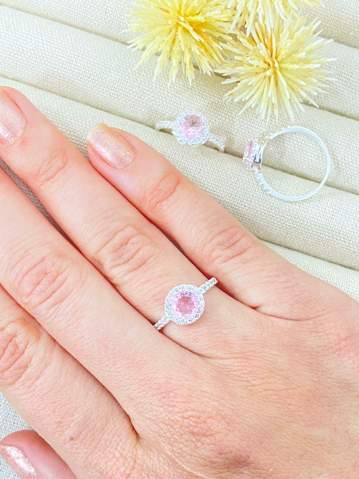 P1-9 ANEL REDONDO CRAVEJADO ROSA ANI313A 1.54g Lote 19