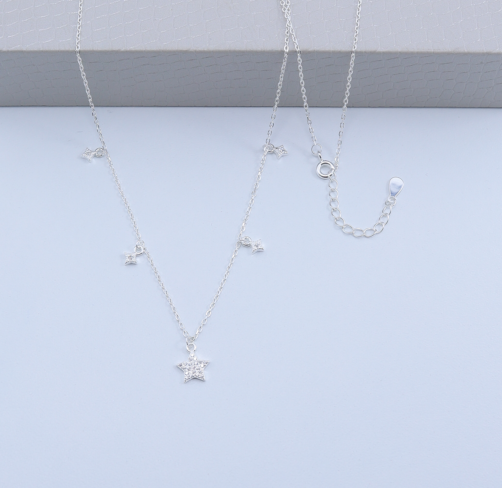 B2-70 Colar Cravejado Estrela Importado Prata 925 Peso Aproximado 2,1g Lote 17