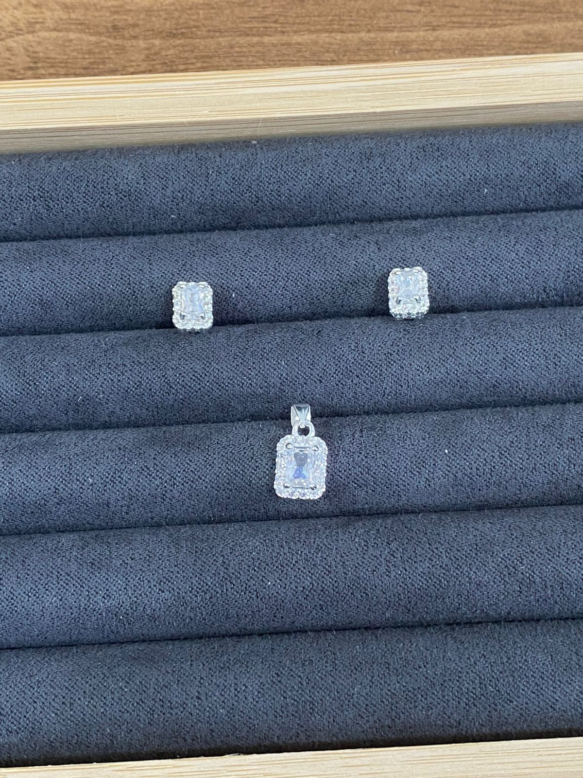 B5-84 Conjunto Retangular Cravejado Importado 2,65g Lote 17