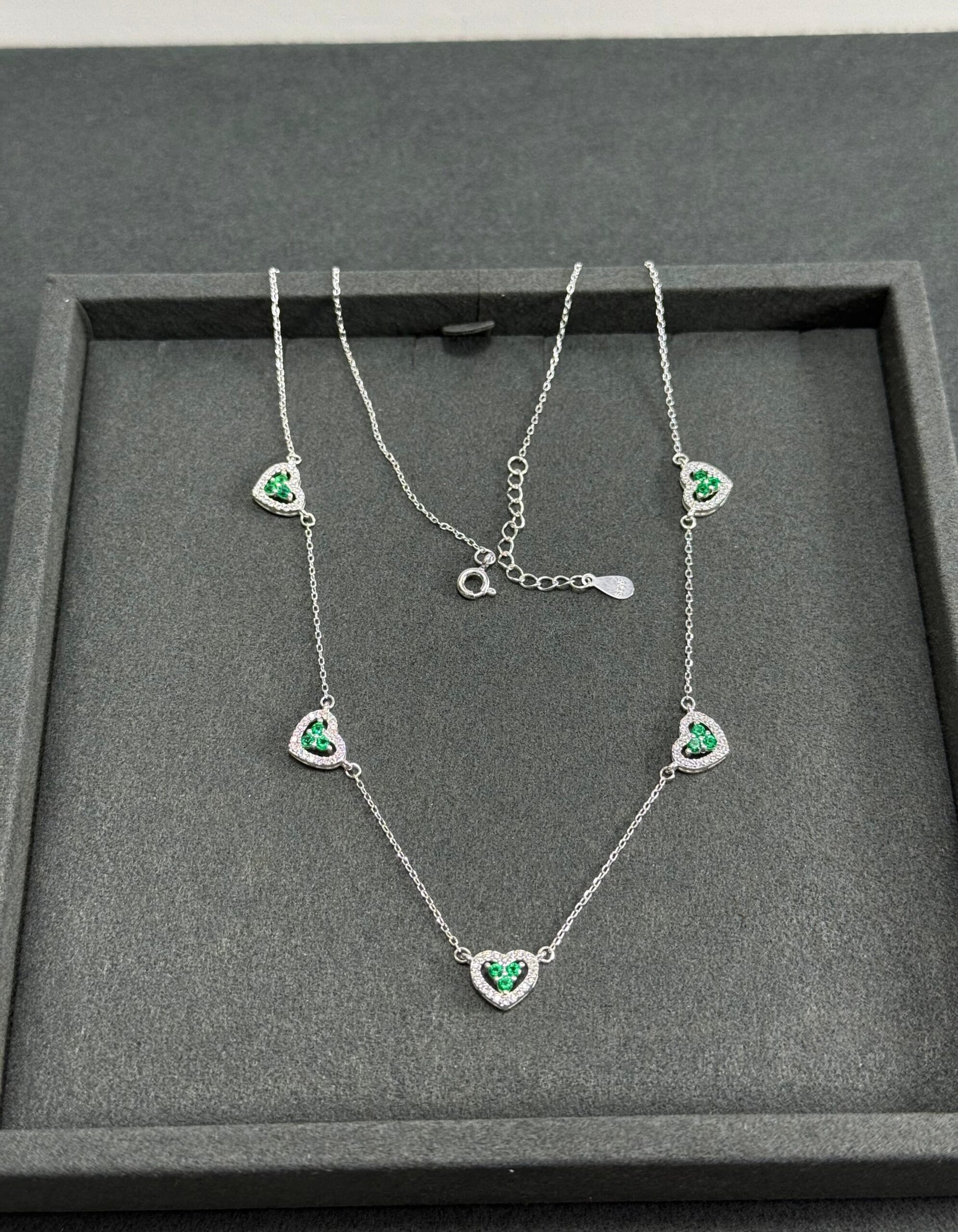 C3-94 Colar 5 Corações Cravejados Importado 42+3cm Peso Aproximado 3.6g Lote 17